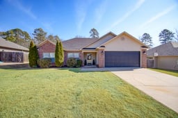 Elegant turn key home located in the newest phase of Hamilton Park with extensive upgrades completed in 2023. Updates include new roof, fresh interior/exterior paint, new flooring, added can lighting, and updated light fixtures. The thoughtfully updated kitchen features fresh painted cabinetry, new hardware, subway tile backsplash, under-cabinet lighting, and a Lazy Susan for enhanced functionality and style. The living area offers 10-foot ceilings and an added sophisticated modern electric LED fireplace with adjustable ambiance lighting, creating an inviting space for both everyday living and entertaining. The desirable split floor plan provides a private primary suite with dual vanities, his/her closets, and a jetted soaking tub. One guest bedroom includes custom built-in closet storage, while the laundry room is enhanced with additional cabinetry and a built-in wall tree for organized convenience. An attic loft provides generous storage for seasonal decor and belongings. The home is recently connected to Hyper Fiber Internet. Outdoors- enjoy a like new privacy fence with double gate access, a wooded view, serene lake and mountain views, offering peaceful and picturesque setting. Move in ready with refined upgrades throughout in sought-after Hamilton Park location.
