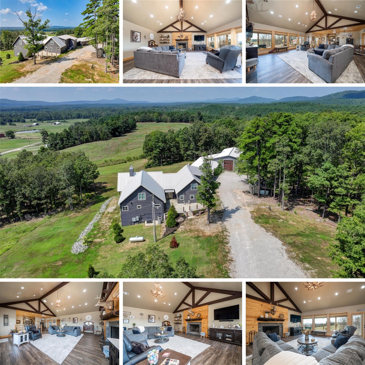 Enjoy panoramic views and gorgeous sunsets from this custom-built home on 23+ acres in Lake Hamilton School District.