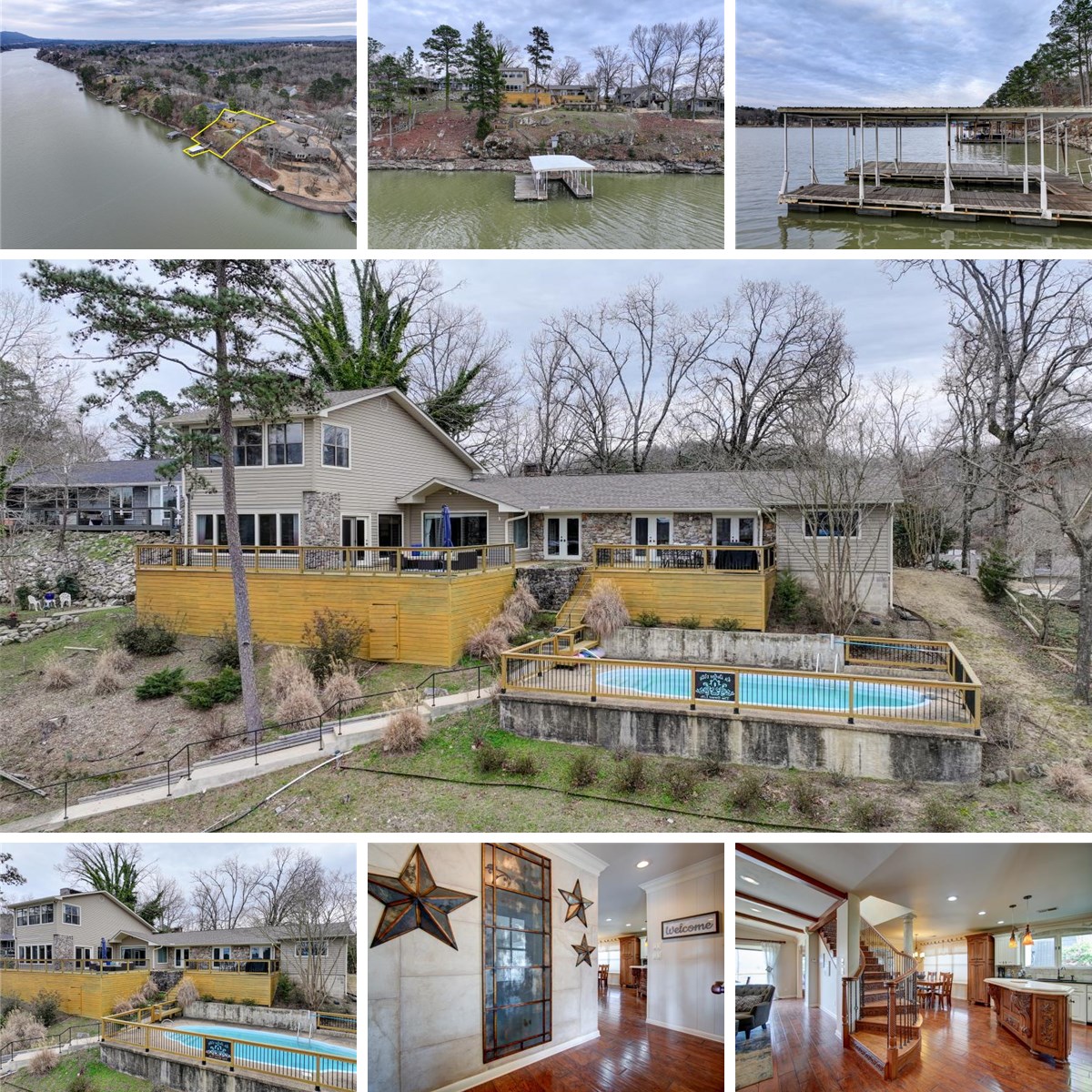 This beautiful lakeside retreat is nestled in a quaint neighborhood on the shores of Lake Hamilton. The home offers two primary suites, a sunroom, an inground swimming pool, a covered boat dock and the most gorgeous views! Whether you are looking for your primary residence, a weekender or an income producing property, this is a must see! Office can be used as a 4th bedroom. Primary bedroom suite upstairs includes his and her closets, double vanity, soaker tub and a walk-in shower. Gorgeous wood floors throughout and lake views from almost every room! Don't let this one get away!